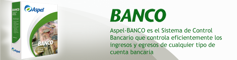 Aspel-BANCO es el Sistema de Control Bancario que controla eficientemente los ingresos y egresos de cualquier tipo de cuenta bancaria, ofreciendo información financiera precisa en todo momento. Permite manejar movimientos y saldos en moneda nacional y extranjera, la programación de movimientos periódicos, el control de inversiones en plazo fijo y en acciones, así como la conciliación electrónica con las principales instituciones financieras.